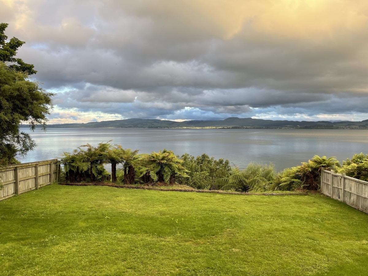 Wytchwood Lake House ligger få skridt fra søkanten - følg bare den brede havesti ned til vandet. Det er komfortabelt møbleret med en varm, hyggelig pejs om vinteren og døre, der åbner ud til både for- og bagdæk om sommeren. Den beskyttede bageste terrasse med udsigt over haven er fantastisk til udendørs spisning, mens den store forreste terrasse har udsigt over Lake Rotorua, hvilket giver dig fantastiske solnedgange og udsigt over byens lys om aftenen. Ejendommen ligger 20 minutters køretur fra byen, ned ad en fælles indkørsel.
