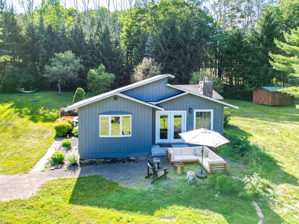 Nestled among Hemlock trees & steps from a 30 ft waterfall is our cozy A-frame cabin. Sitting on 33 private acres connected to state land, enjoy waterfall views while sipping coffee in front of the fireplace. The casita was intentionally designed to feel like a home away from home. In summer, cool off in the waterfalls & private streams, in autumn take in the stunning foliage & in winter ski/snowboard at Belleayre (25 mins away). Alder Lake & the Pepacton Reservoir fishing are a 10 min drive.