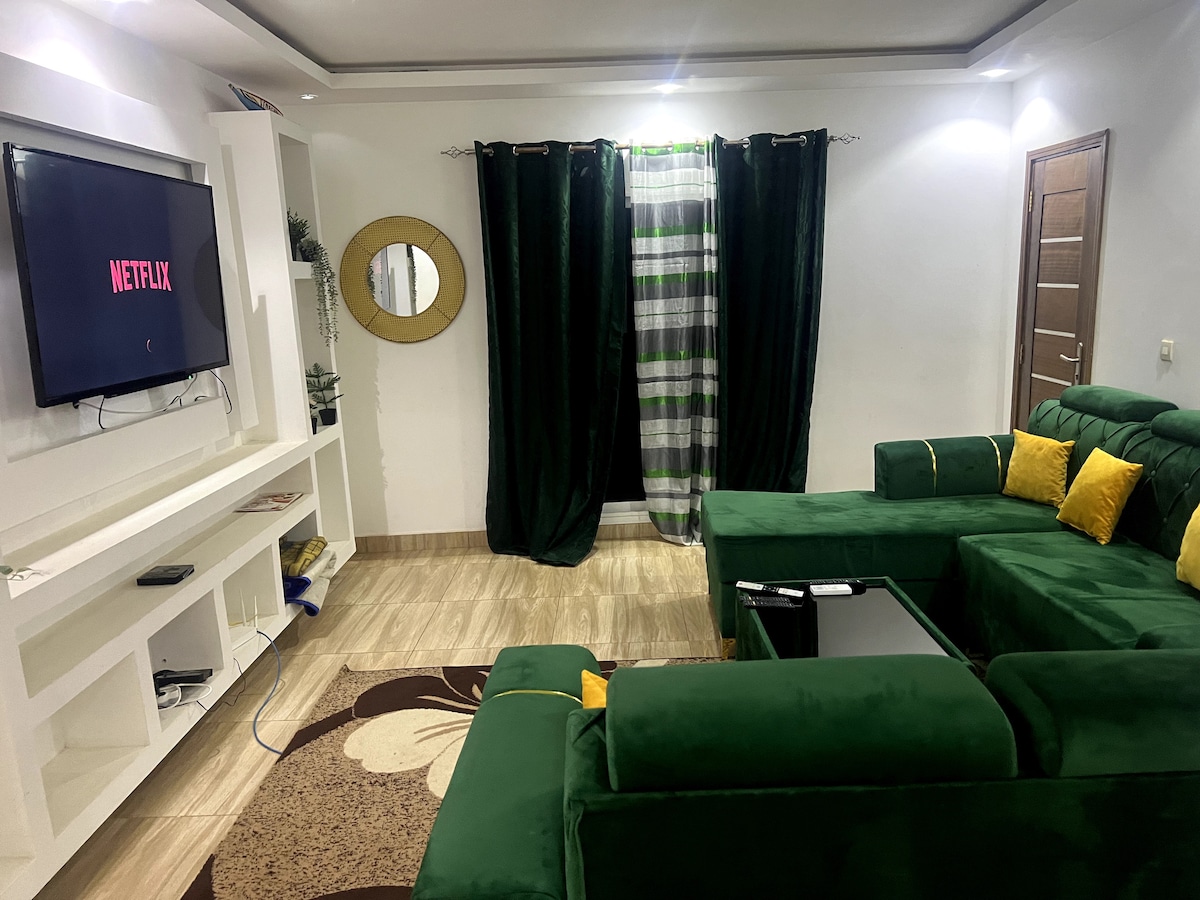 Luksuriøs F3 lejlighed møbleret på Cité des Officials de Diamniadio. 2 soveværelser med aircondition og badeværelse (varmt vand, jacuzzi) og amerikansk køkkenlounge. • Udstyret køkken: Spisestue; Vaskemaskine; Strygejern; Kaffemaskine; Brødrister; Brødrister; Blender; Blender; Mikrobølgeovn; Mikrobølgeovn; Køleskab...osv. • Stue: stort tv og satellitkanal abonnement; WiFi; Tæt på butikker, 30 minutter fra stranden i Saly og Somone; Mbour, 10 minutter fra AIBD lufthavn; 30 minutter fra Dakar centrum