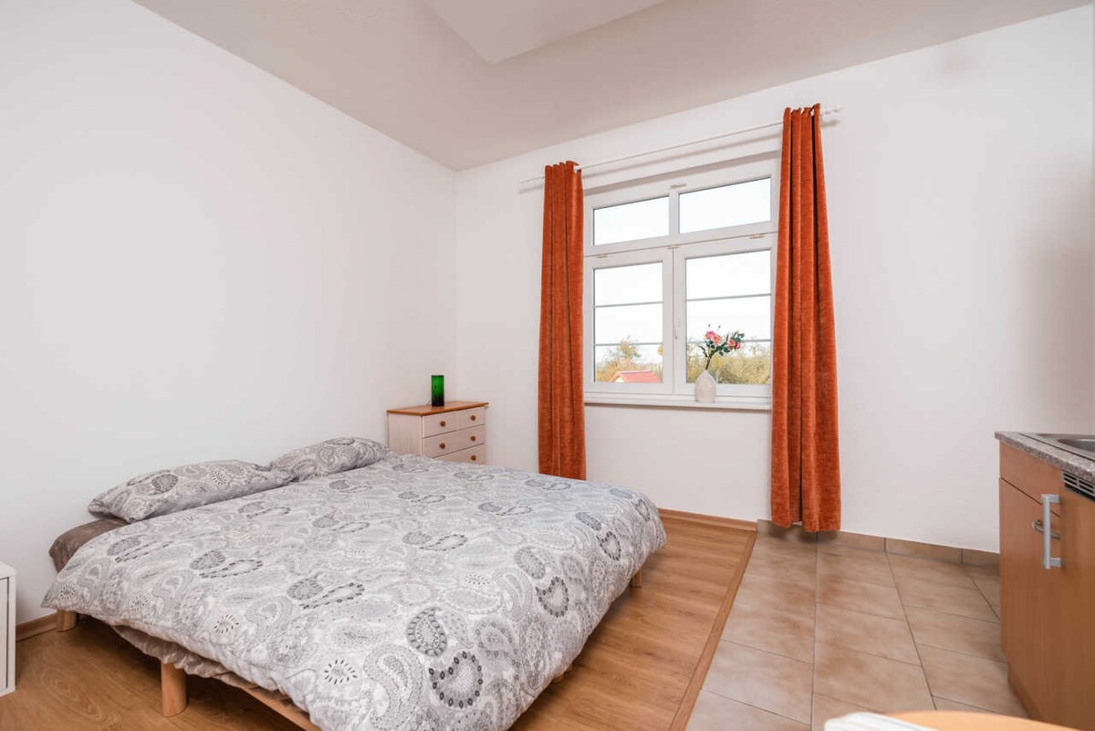 Lejligheden ligger i en bygning med 3 andre lejligheder, herunder en have, en privat del af den forreste terrasse med udsigt over haven, til fåregræsset til vandet. Vores robåd ligger i vandet ca. 100 m væk, og det inviterer til en sejltur. Derudover kan kanoer og kajakker samt en bålplads bruges. Det samme gælder for et par (om end ældre) cykler. Hvis du ønsker at opleve den rene natur og den rolige side af Rügen, er du kommet til det rigtige sted!