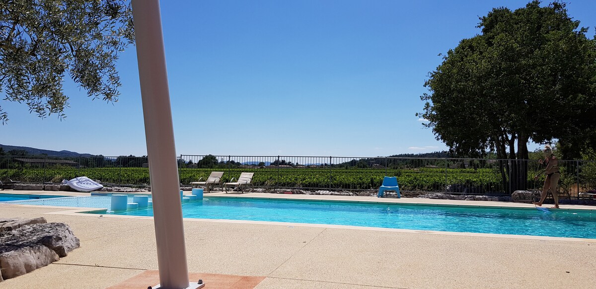 I hjertet af skoven, på en indhegnet ejendom på 7000 m2, 10 minutter fra motorvejsafkørslerne til byerne Orange og Bollène, finder du ro og fred. Vandrere, cyklister, livsnydere, naturelskere, du skal blot gå gennem porten for at få adgang til dine yndlingsaktiviteter. Boligen er fuldt udstyret: - Sengetøj og håndklæder - Nespresso kaffemaskine - Tekande - Brødrister - Smart-tv - Grill på terrassen Swimmingpoolen er tilgængelig fra 10.00 til 19.00.