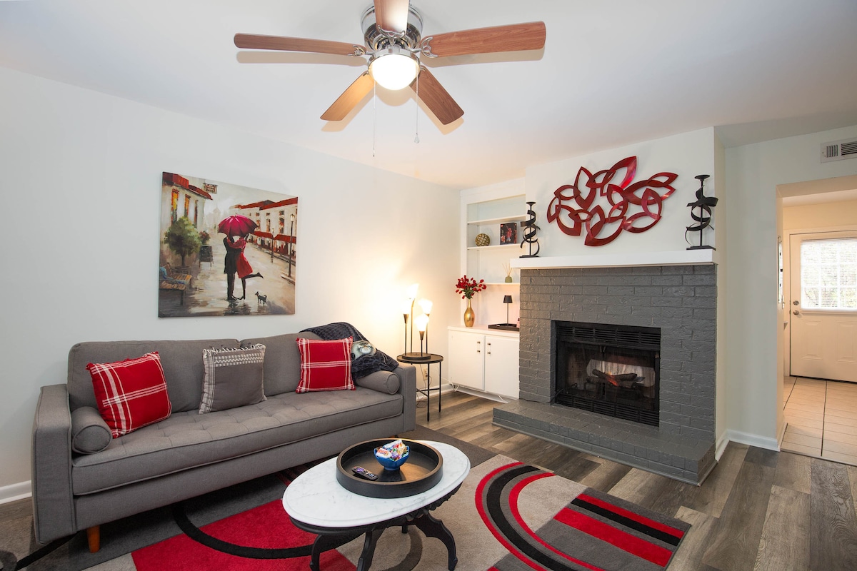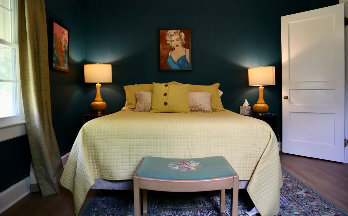 Unik og hyggelig familievenlig 2BR hytte. Stille gade med nem adgang til faciliteter såsom shopping og spisning. Gå eller cykle til MTSU. Kun to miles fra den historiske Murfreesboro-plads, med natteliv og familievenlige arrangementer som Saturday Farmer's Market. Indkørslen har adgangspunkter på to gader for nem parkering. Indhegnet baggård med en stor, overdækket terrasse til udendørs afslapning. Denne bolig har original, lokal kunst i alle rum, hvilket bidrager til den eklektiske og farverige stemning!