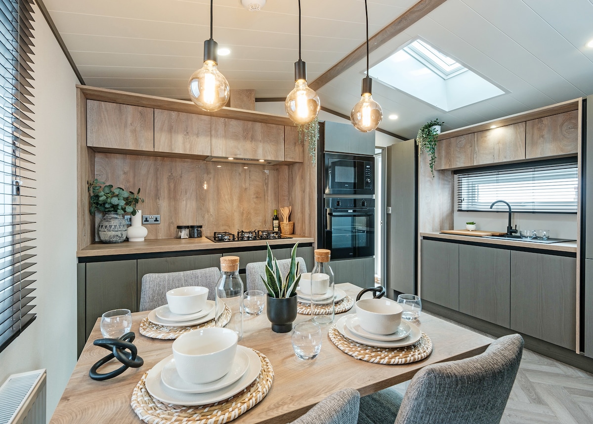 The stylish and contemporary 2-bed Lakewood Lodge offers a bright, spacious retreat ideal for couples.