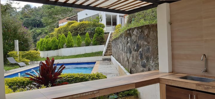 Ejendom med swimmingpool og grill i nærheden af Pasto