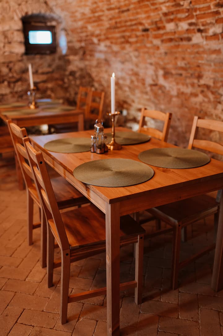 Bran-hjem med have, grill, nær slottet