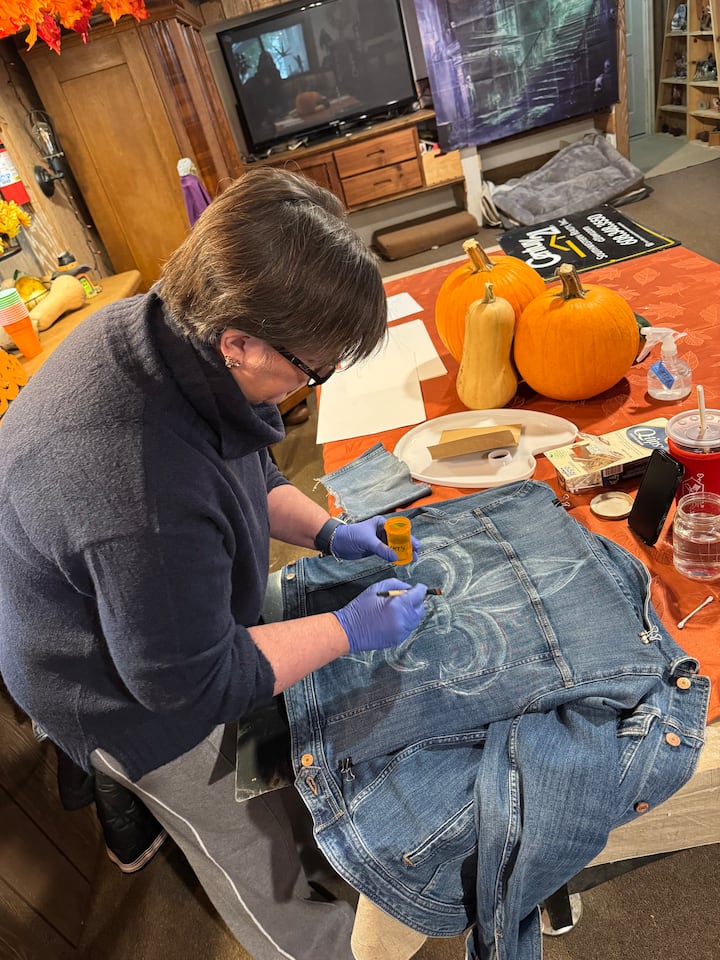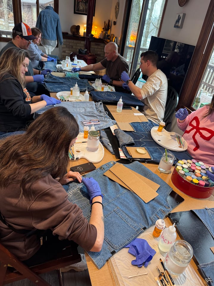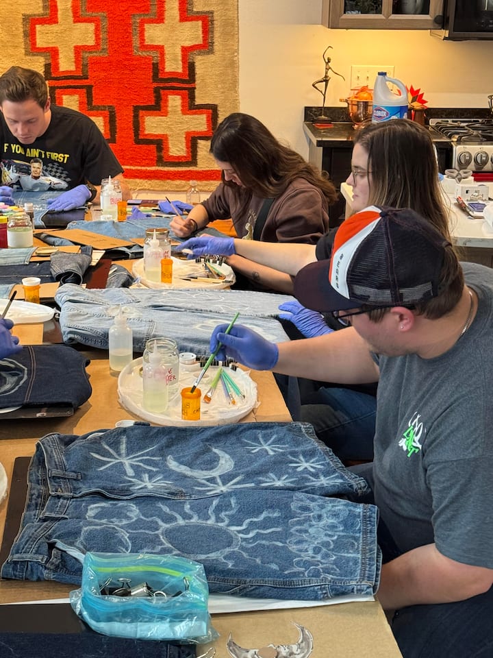 Kursus i blegning og akrylmaling af genbrugsjeans