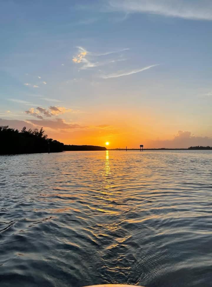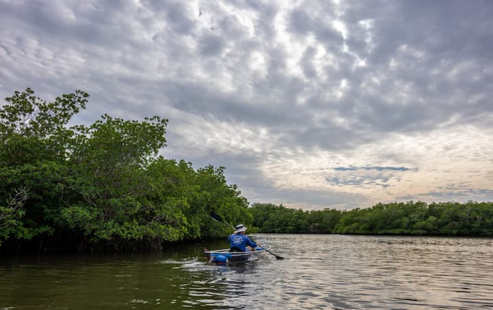 Kajaktur i solnedgangen i mangroven i Fort Pierce