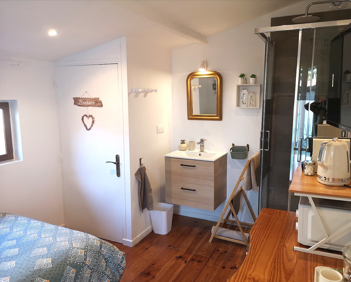 Vi er glade for at tilbyde dig vores studio (til orientering, et studio omfatter ikke et soveværelse), der ligger ved siden af vores hovedbolig, fuldt møbleret og udstyret. Dette sted har alle de bekvemmeligheder, du har brug for til forretningsrejser, en weekend eller under din ferie. Beliggende 18 km fra Capitol, finder du i nærheden: restauranter, barer, sø, skov osv. PS: Der er håndklæde, sengetøj og håndklæder.