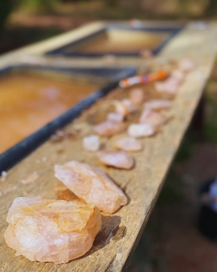 Grav efter krystaller med en stenkvinde