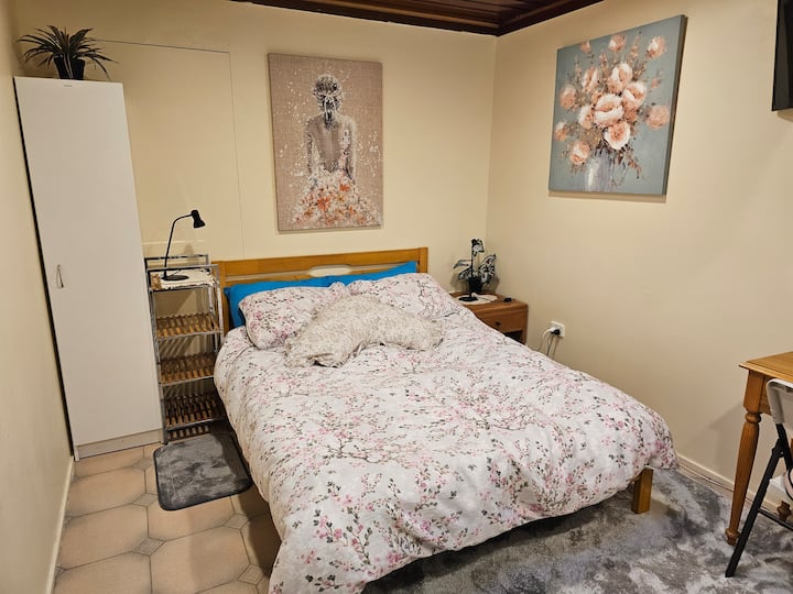 1 hyggelig lejlighed med soveværelse + overdækket parkeringsplads
