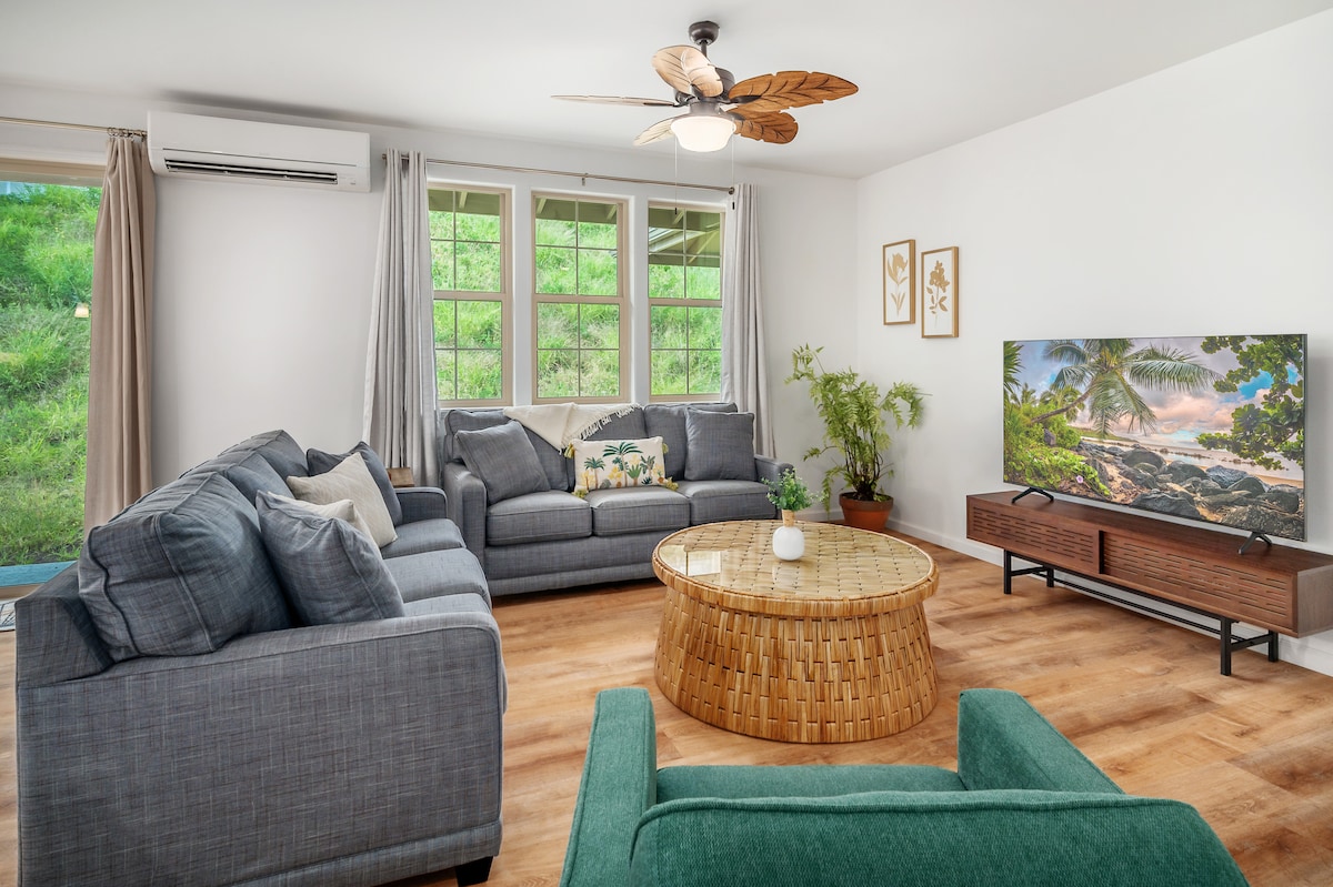 Et smagfuldt designet hjem med 4 soveværelser/2,5 badeværelser i et lukket område (bygget i 2022), beliggende i den smukke Makaha Valley. Privat baggård med betagende udsigt over Wai'anae Mountain og et lille glimt af havet. Nyd kvalitetstid med familie og venner i dette stilfulde, hyggelige hjem. Oplev den sande smag af paradis på den vestlige side af Oahu, væk fra byens travlhed. De endeløse strande langs kysten, fantastisk dyreliv og storslåede bjerge vil gøre din ferie mindeværdig!