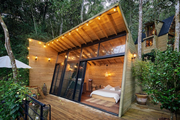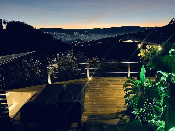 Casa en la Nube Hytte med jacuzzi, terrasse og grill
