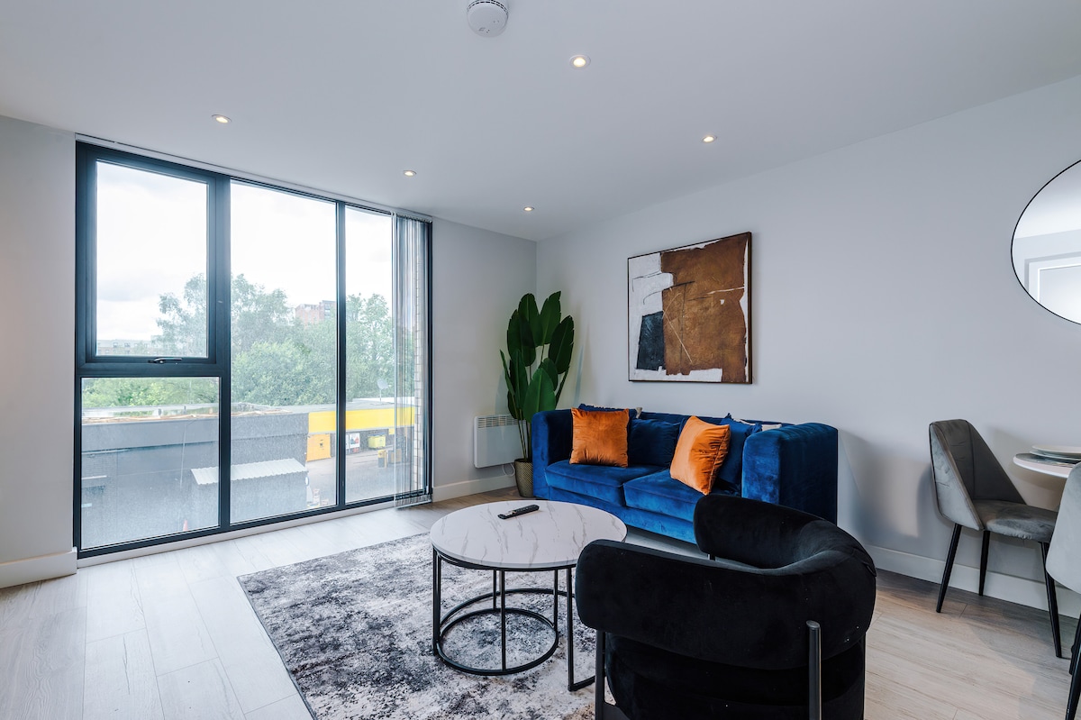 En helt ny luksuriøs 1-værelses lejlighed med en sofa seng indrettet med førsteklasses egetræsmøbler. Den er lys, rummelig og komfortabel Den ligger bekvemt over for Emirates Old Trafford og kun 5 minutters gang til det legendariske Manchester United Stadium, og den har en førsteklasses beliggenhed. Desuden fører en kort 5-minutters gåtur dig til sporvognsstationen, der giver direkte adgang til det travle bycenter. Oplev den perfekte blanding af historie, sport og underholdning under dit ophold