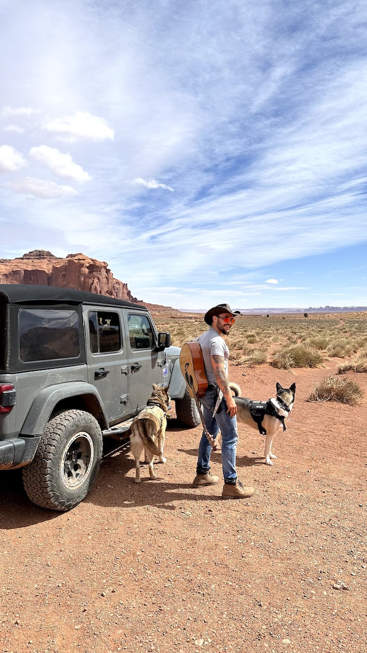 Private ørkenture i terrængående køretøjer med huskyer