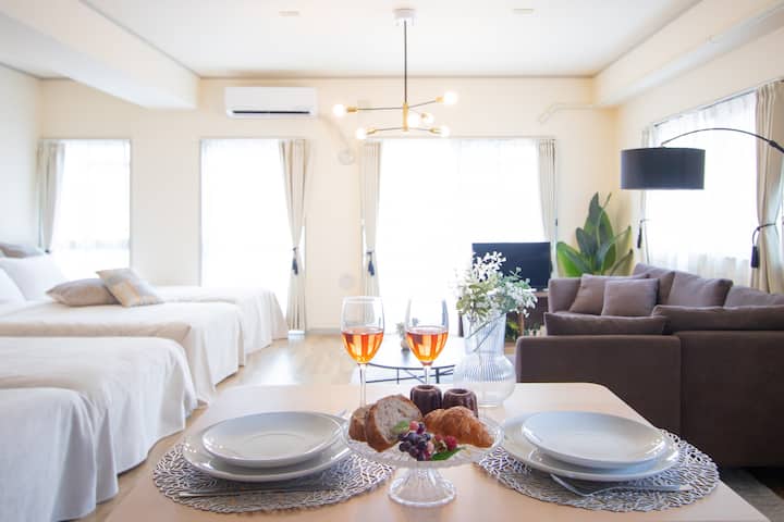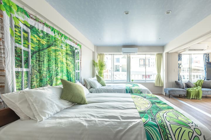 3LDK | Op til 10 personer | 30 sekunder fra nærmeste station | Rumdesign med blomster, der minder om steder fra hele verden