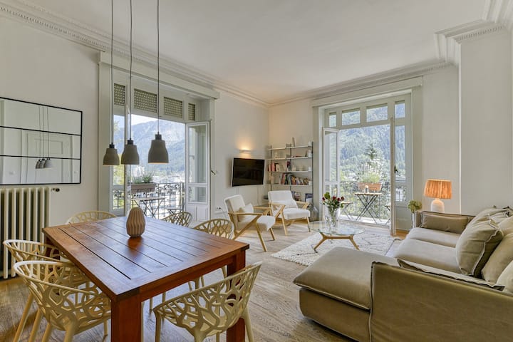 Rummelig lejlighed til 5 personer med udsigt over Mont Blanc
