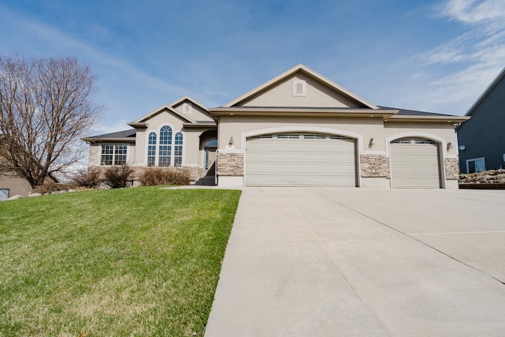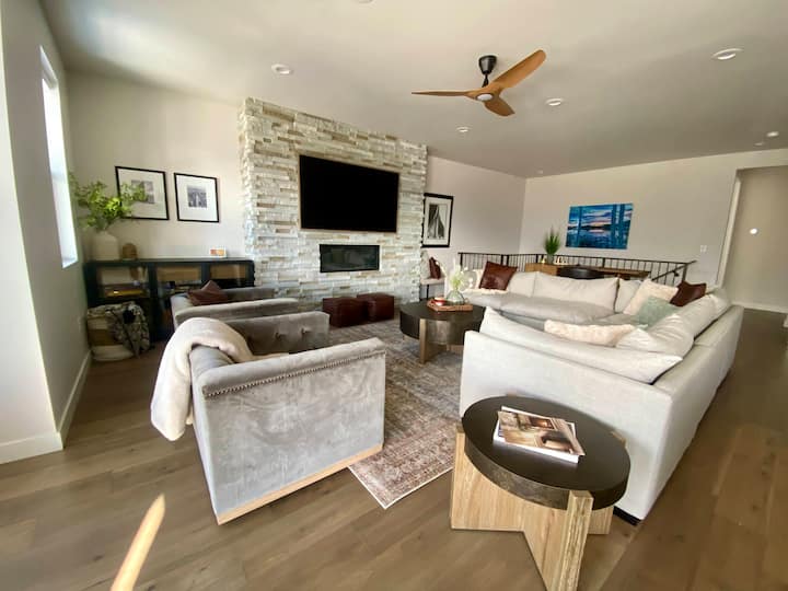 Lokal perle med kingsize-dobbeltseng, 65" tv, boblebad, skibus