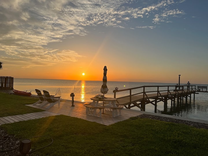 Privat kaj, "Flounder Flats" hytte på Copano Bay