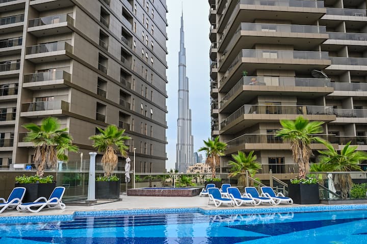 Chic 1BR & 4 minutter gang til Dubai Mall & Burj Khalifa