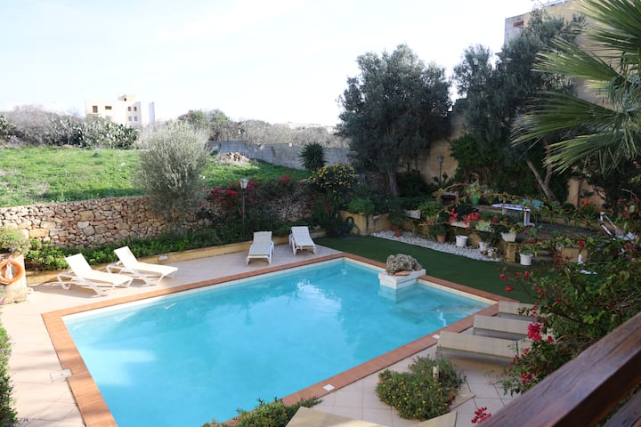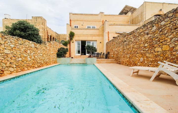 GĦARB – bondegård med 4 soveværelser med dobbeltsenge og pool
