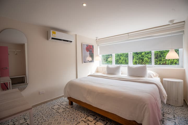 Queensize-dobbeltseng, varmt vand, wi-fi, aircondition, privat badeværelse