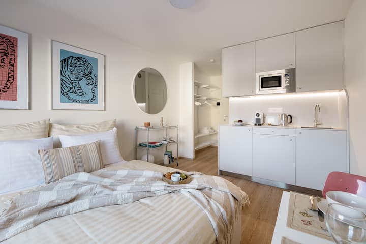 Moderne lejlighed nær byens centrum med kaffe til dig