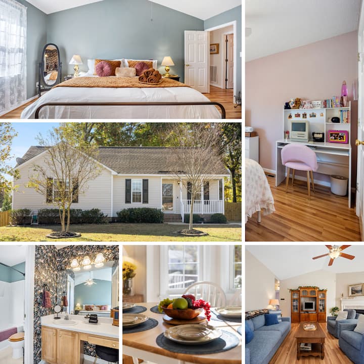 Privat | Kingsize-dobbeltseng | Gå til Downtown Fuquay |