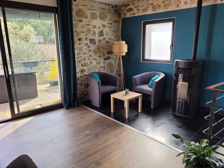 Stueetage med jacuzzi 30 min Nice