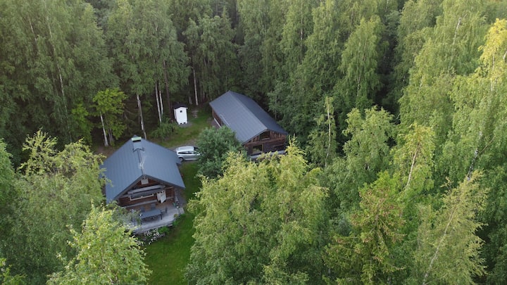 Tømmerhytte og sauna i Sulkava ved Saimaa-søen