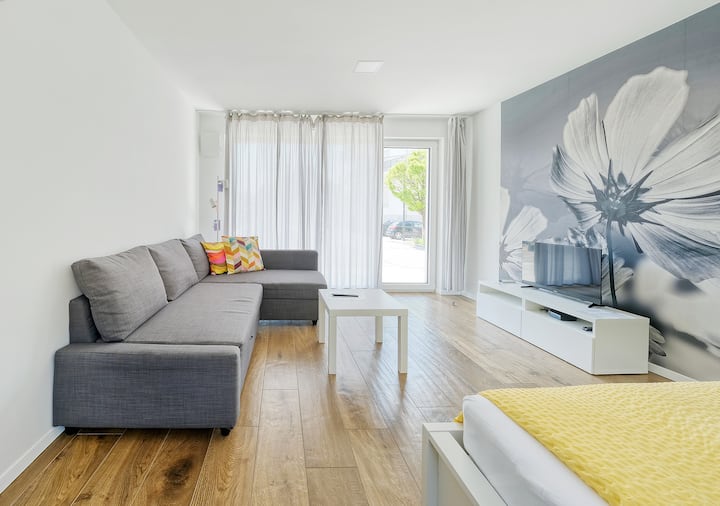 Hyggelig studiolejlighed, gratis parkering, aircondition - gå til den gamle bydel