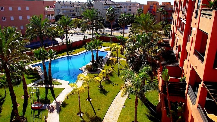 Lys lejlighed ved havet, pool, aircondition, wi-fi