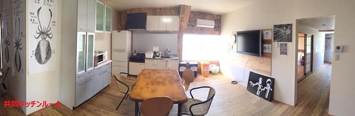 En tidligere ryokan, Shirahama og Kumano Kodo på bakken med Wakayama og Kojo ruiner.Op til 5 personer.Rummelig adgang til toiletter og badeværelser