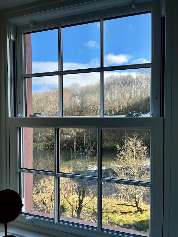 Romantisk soveværelse med himmelseng og unik flodudsigt