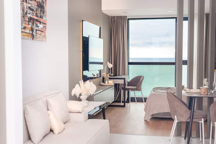 To-værelseslejlighed ved stranden med panoramaudsigt