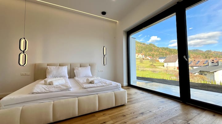 Feriehus med panorama-terrasse og udsigt over Schöckel