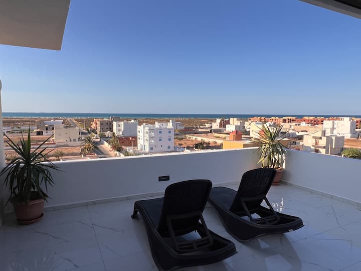 Lejlighed med panoramaudsigt, 4 minutter fra stranden.