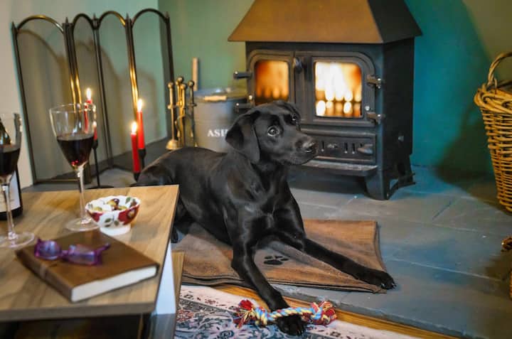 Idyllisk, hundevenlig hytte ved West Wales' kyst.