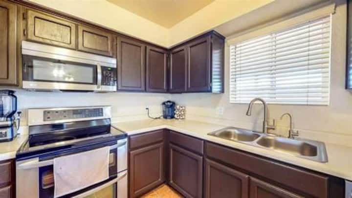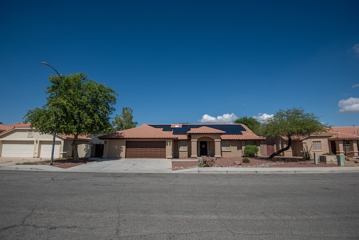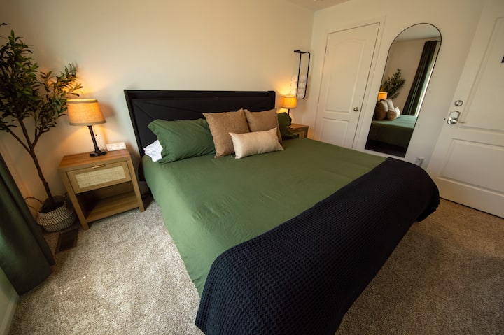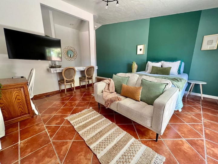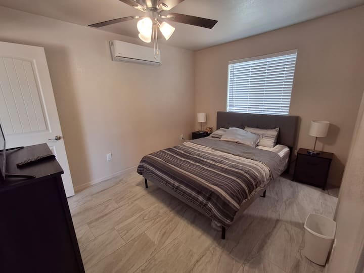 Hyggelig casita med queensize-dobbeltseng og overdækket parkering