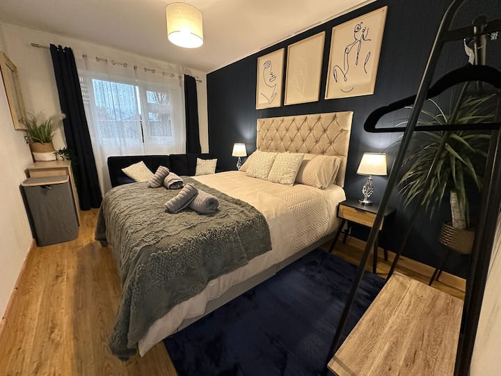 Ny lejlighed i centrum med 2 senge og gratis parkering!
