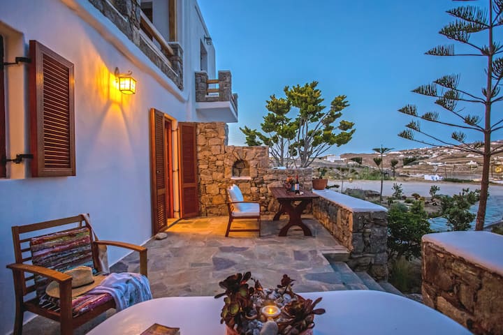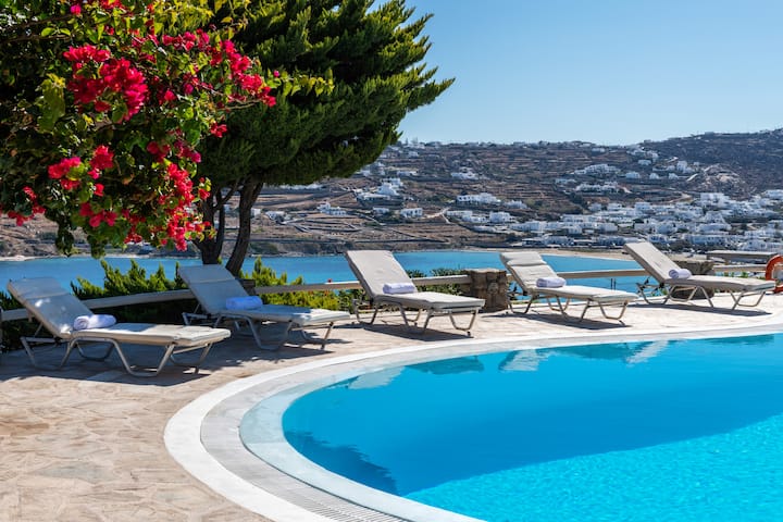Yalos Hotel i Mykonos by med hav- og solnedgangsudsigt