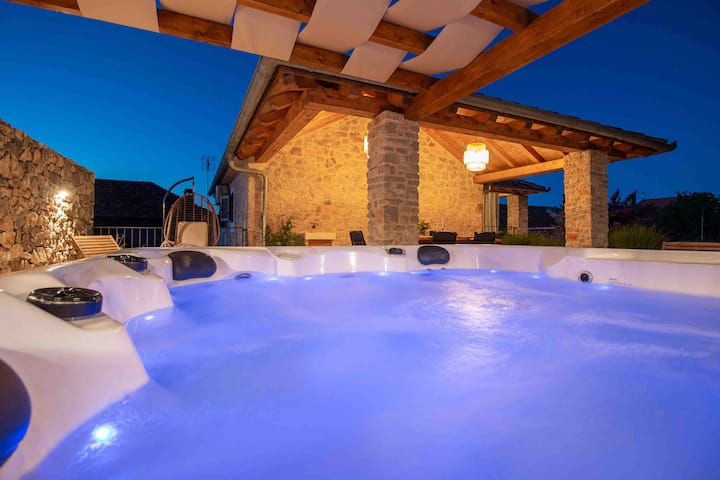 Villa T, rummelig med opvarmet pool, spabad og sauna