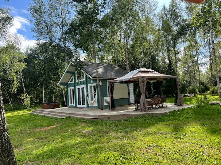 Saunahus ved floden med udendørsbiograf i Kurtna