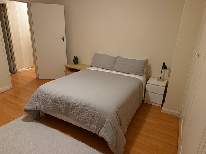 Sikkert og hyggeligt værelse i en bekvem lejlighed i byen
