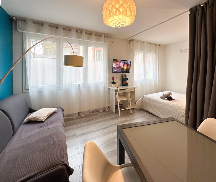 Behagelig atelierlejlighed, med parkering, i hjertet af Carmes