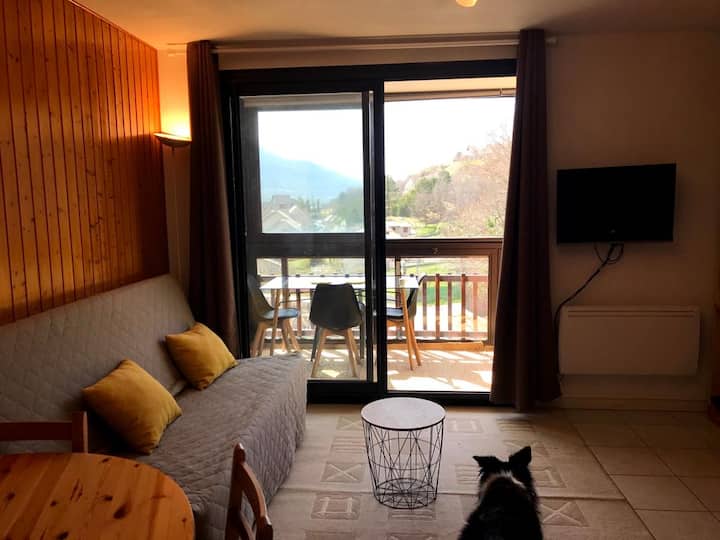 Hyggelig lejlighed i hus med udsigt over bjergene