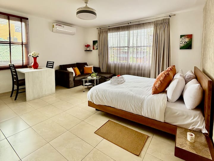 Morgenmad inkl. - queensize-dobbeltseng, aircondition, ventilator, værelse-køleskab