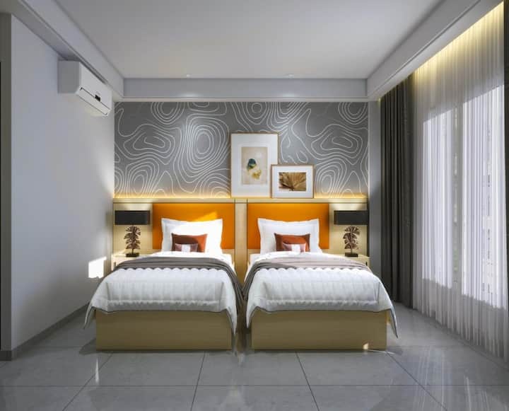 Værelse med pool og balkon, lufthavn og CC2, fitnessrum