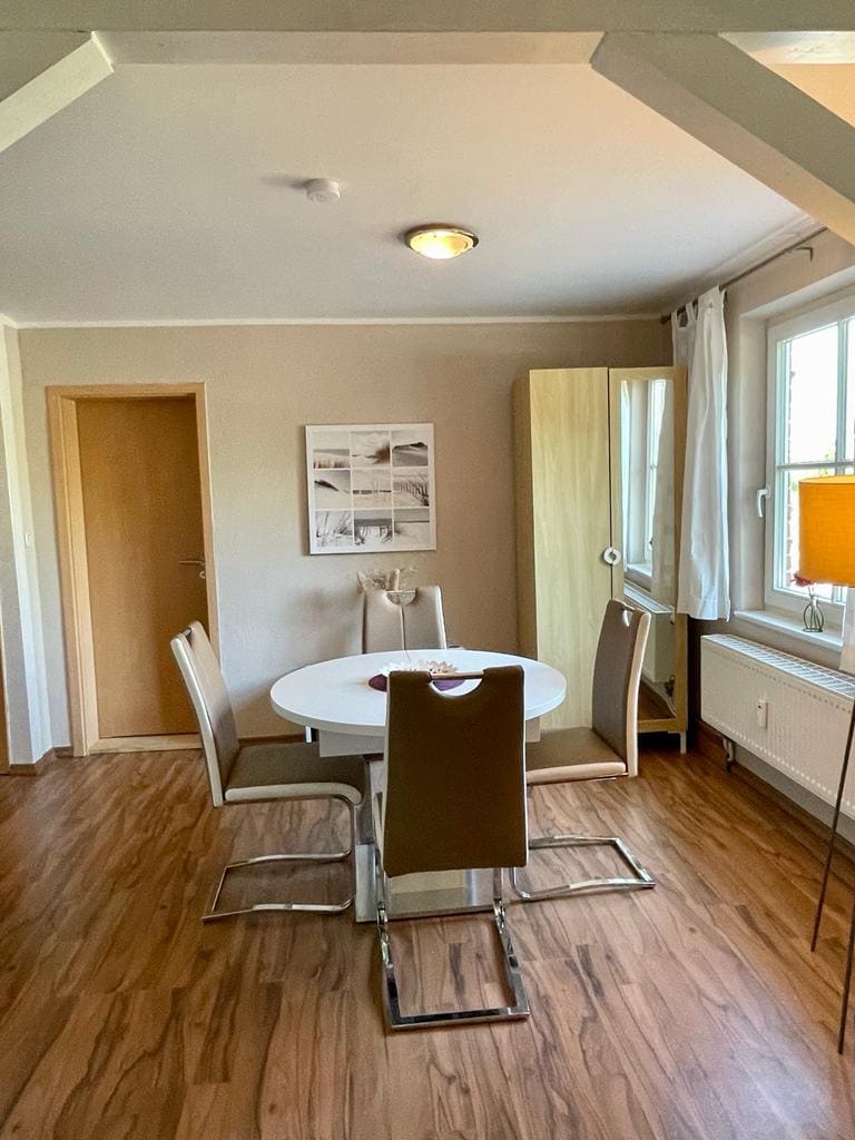 we say welcome! Our beautyful Apartment is located on the seaside of a large lake called the "bodden". You only have to walk about 10 minutes to reach the baltic sea and its endless sandy beaches! Its very quiet out here, no streets, no shopping malls... perfect for relaxing and find yourself! Our apartement has 3 rooms (2 Bedrooms and 1 living room with kitchen) and 1 bath with shower. Overall you have 45 squaremeters. The kitchen is fully equiped with everything u need. also you have a SAT-TV and a stereo. Parkingspace is right round the corner. We have very good restaurants round here, everything reachable by bike! Enjoy one of the most beautieful areas from Germany with a glass of wine in your hand while watching the sun goes down... even in summer or winter! We hope to welcome you and your friends soon! Christiane xxx