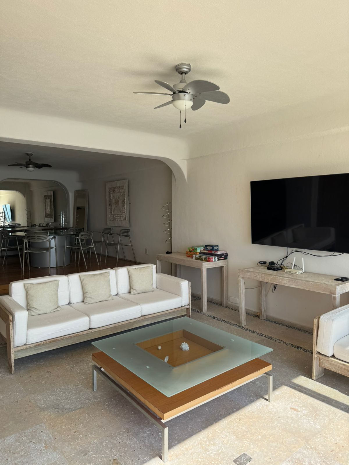 Vores lejligheder i Punta Marqués er blevet totalrenoveret og er klar til at give dig et behageligt og behageligt ophold. Det er dog vigtigt at bemærke, at nogle fællesområder i bygningen stadig er under restaurering efter orkanen Otis. I øjeblikket er elevatorerne ikke i drift, og nogle loftspaneler i gange og fællesområder er endnu ikke geninstalleret. På trods af dette er lejligheden udstyret med alle de nødvendige faciliteter for at sikre et behageligt ophold i denne fantastiske