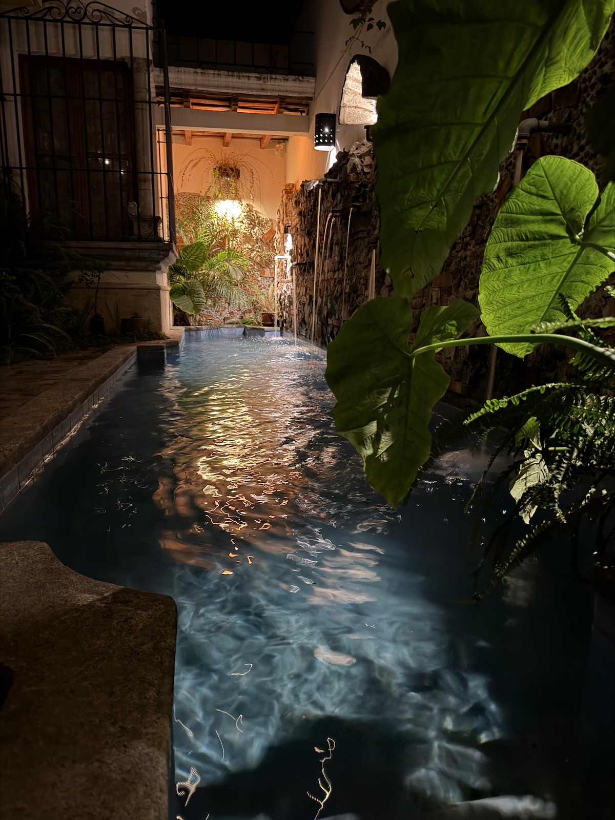 Casa de la Luna er fuldt indrettet og udstyret; et sted med antikke detaljer og forskellige områder, hvor du kan slappe af, eller nyde solen, eller sidde foran springvandet i skyggen og lytte til lyden af vandfaldet og læse din bog uden afbrydelser. Ejendommen er beliggende i et traditionelt lokalsamfund og håndværkere i Santa Ana, det er et område uden støj, omgivet af vegetation og frodige bakker ved siden af en gammel kaffefarm, der giver en atmosfære med ren luft.
